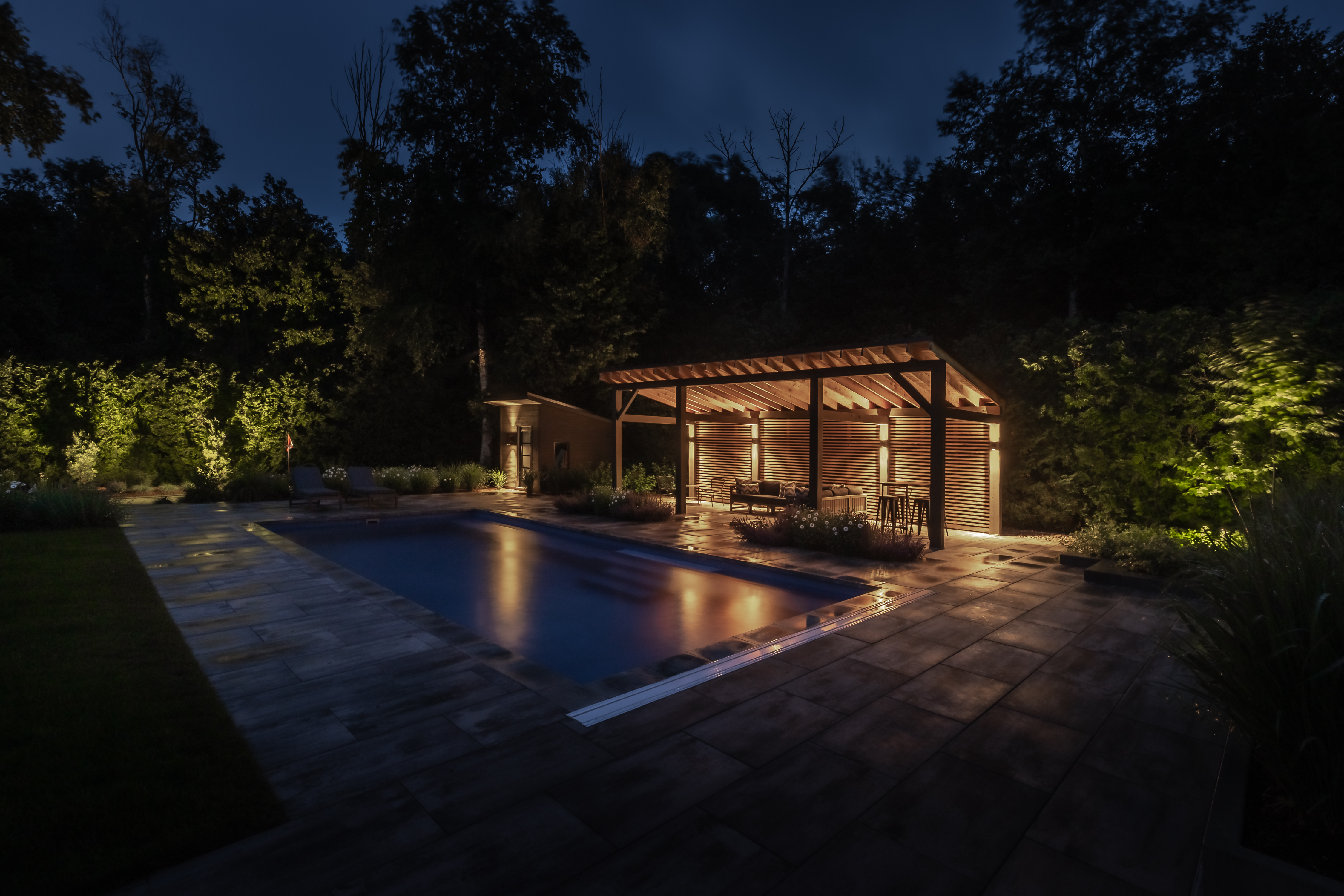 When the sun goes down, there’s no need to go inside. With thoughtfully placed LED lighting throughout your landscape, you can enjoy your outdoor space late into the evening — in the pool, on the patio, or around the fire.